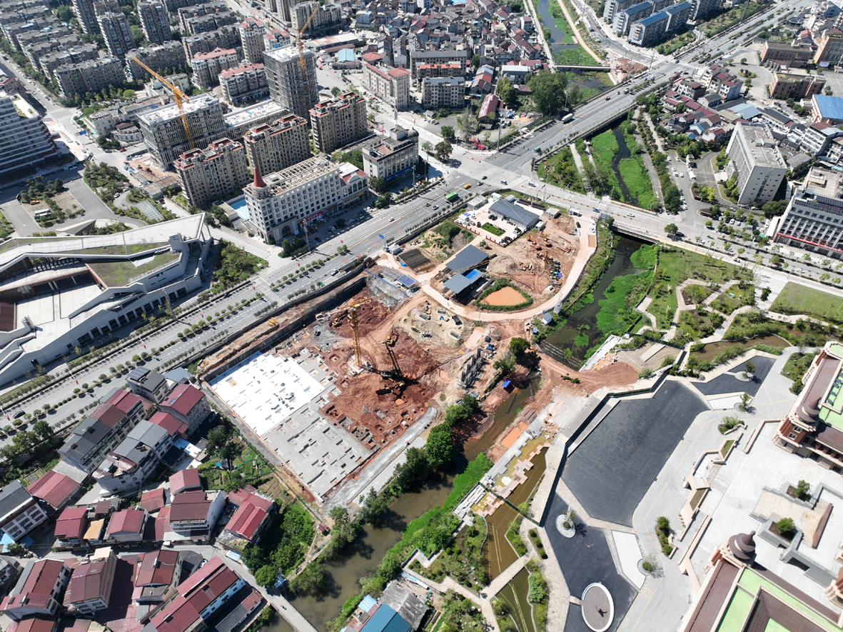 近日,在木玩童话小镇配套(仙境丛林和小镇阳台)项目现场,工人们正集中力量进行桥梁混凝土灌注桩和地下室筏板工程施工。