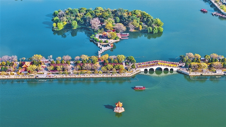 11月10日,秋日里的开封龙亭公园。大运河在开封形成纵横交错的水网。 袁洋 摄