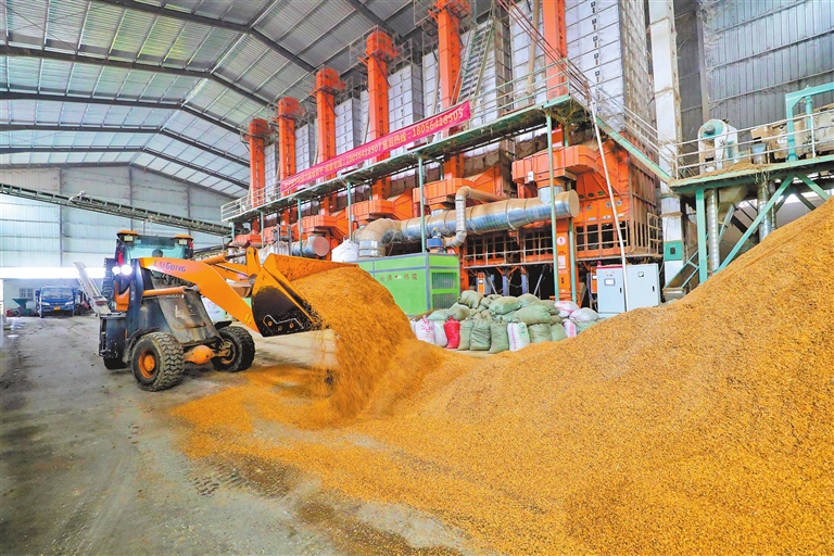 10月11日,在光山县罗陈乡张楼村青龙河合作社大型机械化水稻烘干中心,工作人员正在进行烘干水稻作业。连日来,光山县天气阴晴不定,当地农民克服不利影响抢收水稻。 谢万柏 摄