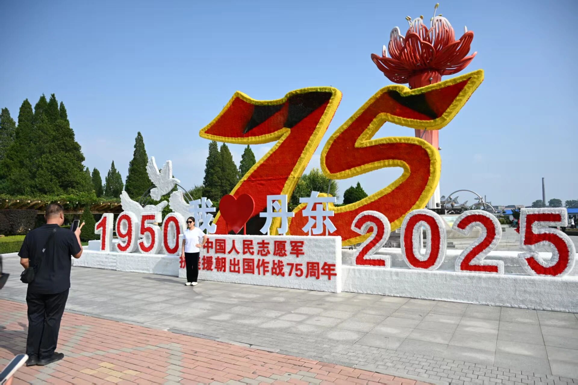 今年国庆期间,市住建局在鸭绿江公园设立了“我爱丹东 中国人民志愿军抗美援朝出国作战75周年”的主题景观,吸引了大量市民与游客专程前来参观、拍照留念。
