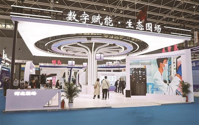 日前,2025中国国际数字经济博览会在石家庄国际会展中心(正定)举行。作为塞罕坝精神发源地、河北省重点生态功能区,围场紧扣“数字赋能·生态围场”核心定位,半导体新材料、中药材数智化、马铃薯全链数据服务、低空经济四大领域的核心企业与创新成果组团参展,通过“企业矩阵+场景落地”的展示模式,集中呈现县域以数字技术激活生态价值、赋能特色产业的转型实践,更以数字技术与生态资源深度融合的新质生产力培育路径,为全国数字经济发展提供“围场样本”。图为博览会现场。 本网记者 李国强 通讯员 李学武 摄